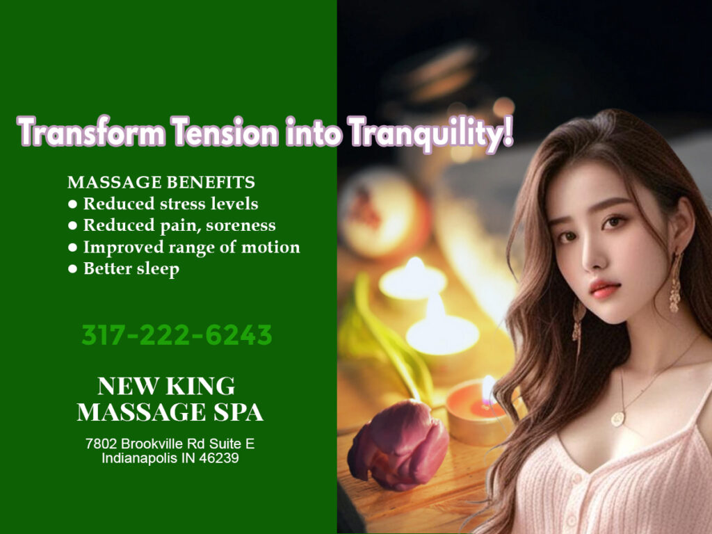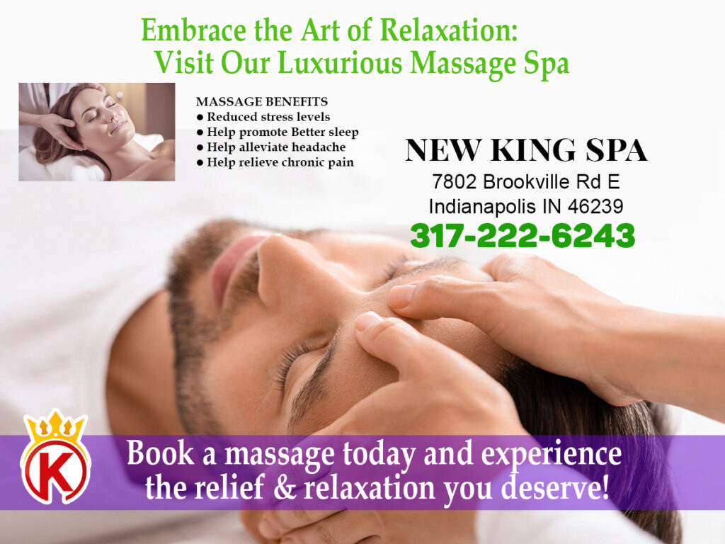 At NEW KING MASSAGE SPA, we pride ourselves on delivering the best Indianapolis Massage experience. Whether you’re seeking deep relief from muscle tension with our Massage, longing for the soothing touch of a wellness massages, or craving the benefits of a Deep Tissue Massage, our skilled staff are here to guide you seamlessly on a journey to wellness.